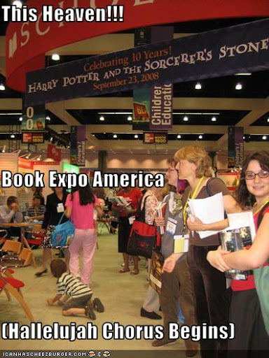 You’ll hear of my clumsy falls, short termed tragedies, treasured moments, and other sentimental Book Expo America occurrences next week. Now, you have to read the diatribe about Book Expo America. Book Expo America does not excuse a dissension into laziness, post Book Expo America. In actuality, Book Expo America marks your official inception into the world of book blogging. By book review standards, that usually calls for a larger amount of ARC’s, new challenges, a greater demand to increase blog traffic, and more reoccurring migraines.