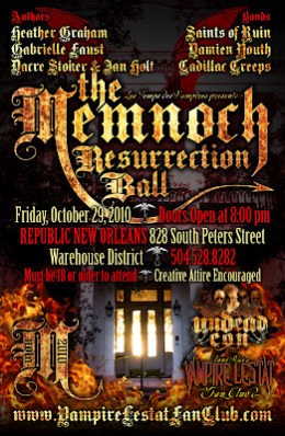 Guest Post Written by Suzie Q. (President of the Official Anne Rice Lestat Fan Club)“This is Suzie Q., President of the Anne Rice’s Vampire Lestat Fan Club. I would be happy to contribute a blog for Anne Rice Fan Month. I was Anne Rice’s first secretary when she moved back to New Orleans in 1988. I met her at the Queen of the Damned booksigning back in October, 1988. As we waited in line, friends Susie and Teresa and I discussed starting a fan club for Anne Rice. She said “Lestat would love to have a fan club” so we collected 30 names of those left in line at the bookstore. The fan club went on till 2000 with 1,000s of attendees at the annual Ball or Gathering of the Coven as we called it. In 2002, I started holding the Ball again after listening to people complain about not having anywhere to go on Halloween weekend. After Katrina, I was unable to afford putting on a huge Ball so I started up the fan club again. Now we have moved to larger venue due to increased attendance and I also started the Undead Con, a conference where authors can network and we can learn about their books. This is my third Undead Conference with Guest Author Sherrilyn Kenyon. You can see the entire lineup on our website, www.arvlfc.com.”