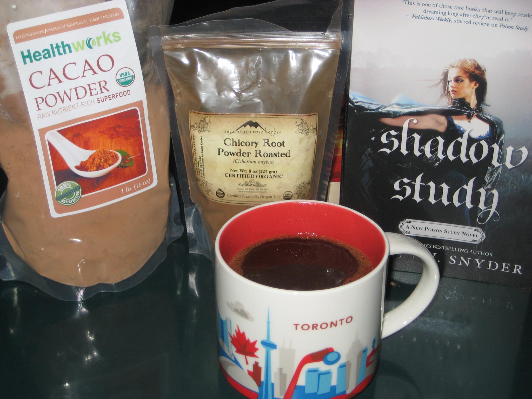 The procedure for preparing this, a beverage that Yelena secretly indulges in off-the-page, is to basically combine all the drink ingredients in your favorite mug, heat some water up using any preferred method (microwave, electric tea kettle, kettle on stove), and then add the hot water to the mug w/ the dry ingredients. Stir the mixture for about 20 seconds, then add a splash of milk, and you have yourself a mug of Yelena’s Favorite type of tantalizing coffee drink, all ready to drink slowly, and indulgently, while flying through the exciting pages of Maria V. Snyder’s Shadow Study.