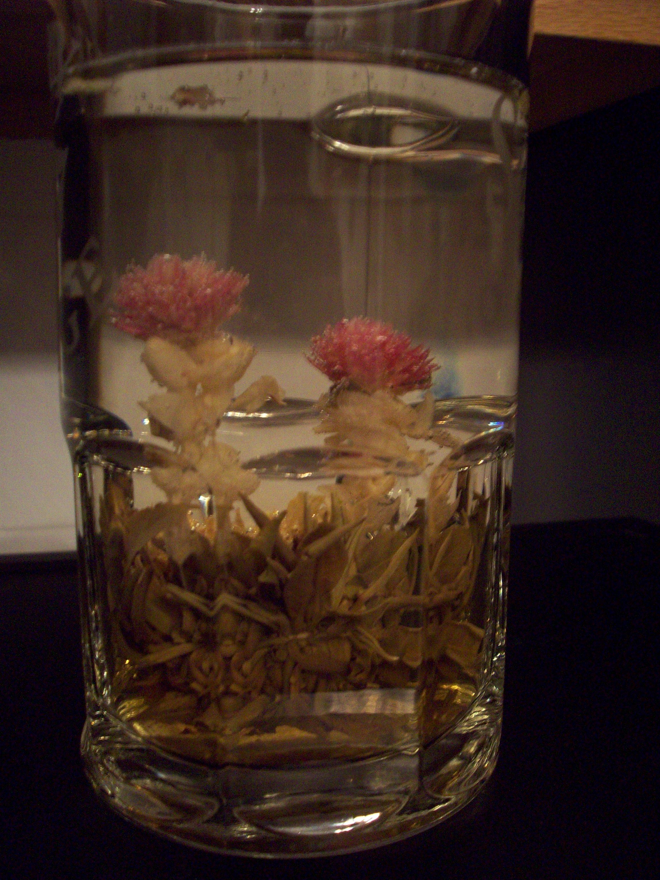 Blooming tea is so fun. 🙂 But unfortunately I’m not a huge fan of jasmine. 😦 Jasmine and lavender always remind me of massage parlors or chiropractor offices, so I don’t get a ‘fresh’ memory to associate with the smells, haha. But it is very beautiful!